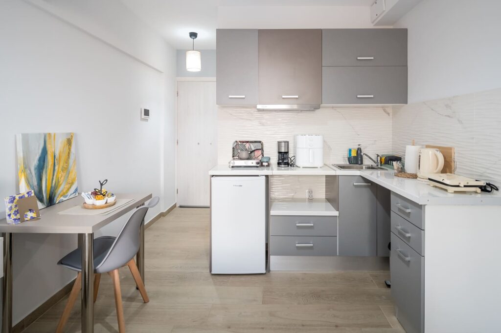Αποτελείται από εναν ενιαίο χώρο που διαθέτει ένα άνετο διπλό κρεβάτι και ένα ανάκλιντρο που μετατρέπεται εύκολα σε μονό κρεβάτι, μία μικρή αλλά πλήρως εξοπλισμένη κουζίνα που σας δίνει τη δυνατότητα να ετοιμάζετε τα γεύματά σας και ένα μπάνιο με ντουζιέρα και πλυντήριο ρούχων για μεγαλύτερη άνεση.