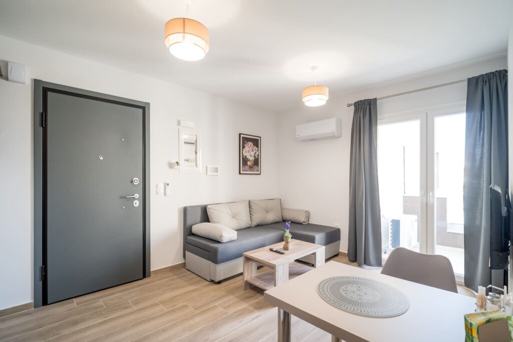 Διαθέτει ένα άνετο διπλό κρεβάτι στο υπνοδωμάτιο και ένα καναπέ που μετατρέπεται σε διπλό κρεβάτι στο καθιστικό, μία μικρή αλλά πλήρως εξοπλισμένη κουζίνα που σας δίνει τη δυνατότητα να ετοιμάζετε τα γεύματά σας, και ένα μπάνιο με ντουζιέρα.